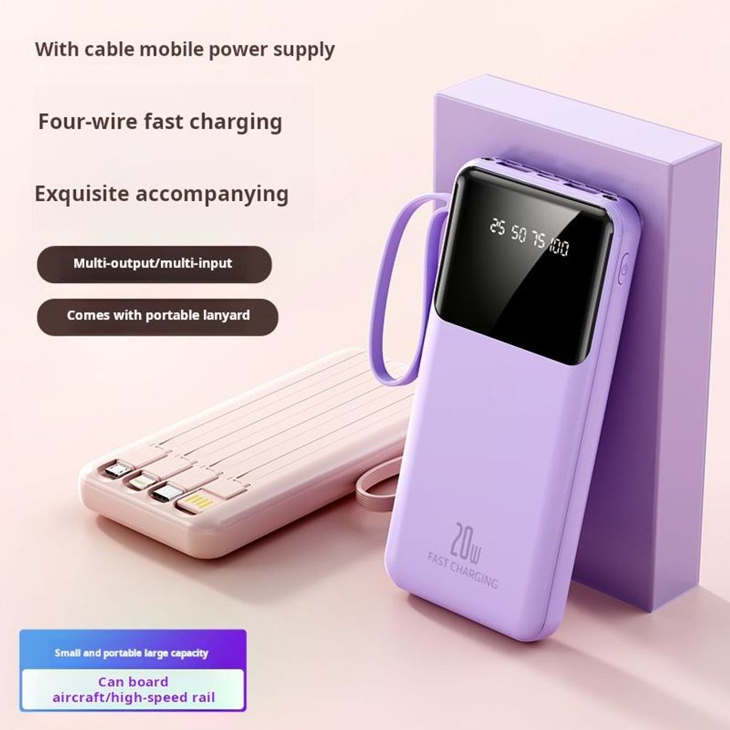 Charmast 20000mAh Portable Charger with Built in Cable 22.5W Travel Power Bank Fast Charging USB-C Suitable for Various Mobile Phones and Tablets