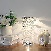 - Modern Design Crystal Lamp: The crystal lamp is made of PC+ transparent acrylic material, which is durable and not easy to be damaged. The exterior is finely polished and crystal clear, with a cut surface in the shape of a diamond lampshade. When you turn on this crystal table lamp, it glows like a diamond, reflecting a diamond-shaped light effect. Place it on a dining table or nightstand and decorate it elegantly to add a romantic ambience to your home.