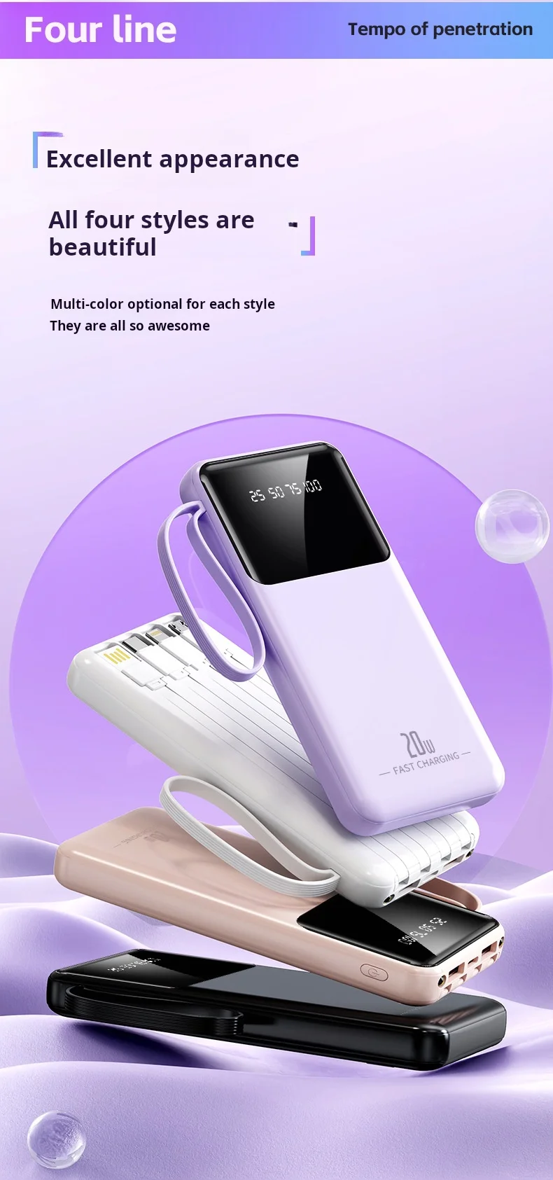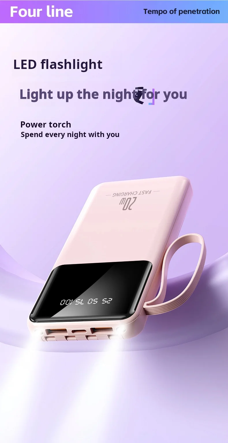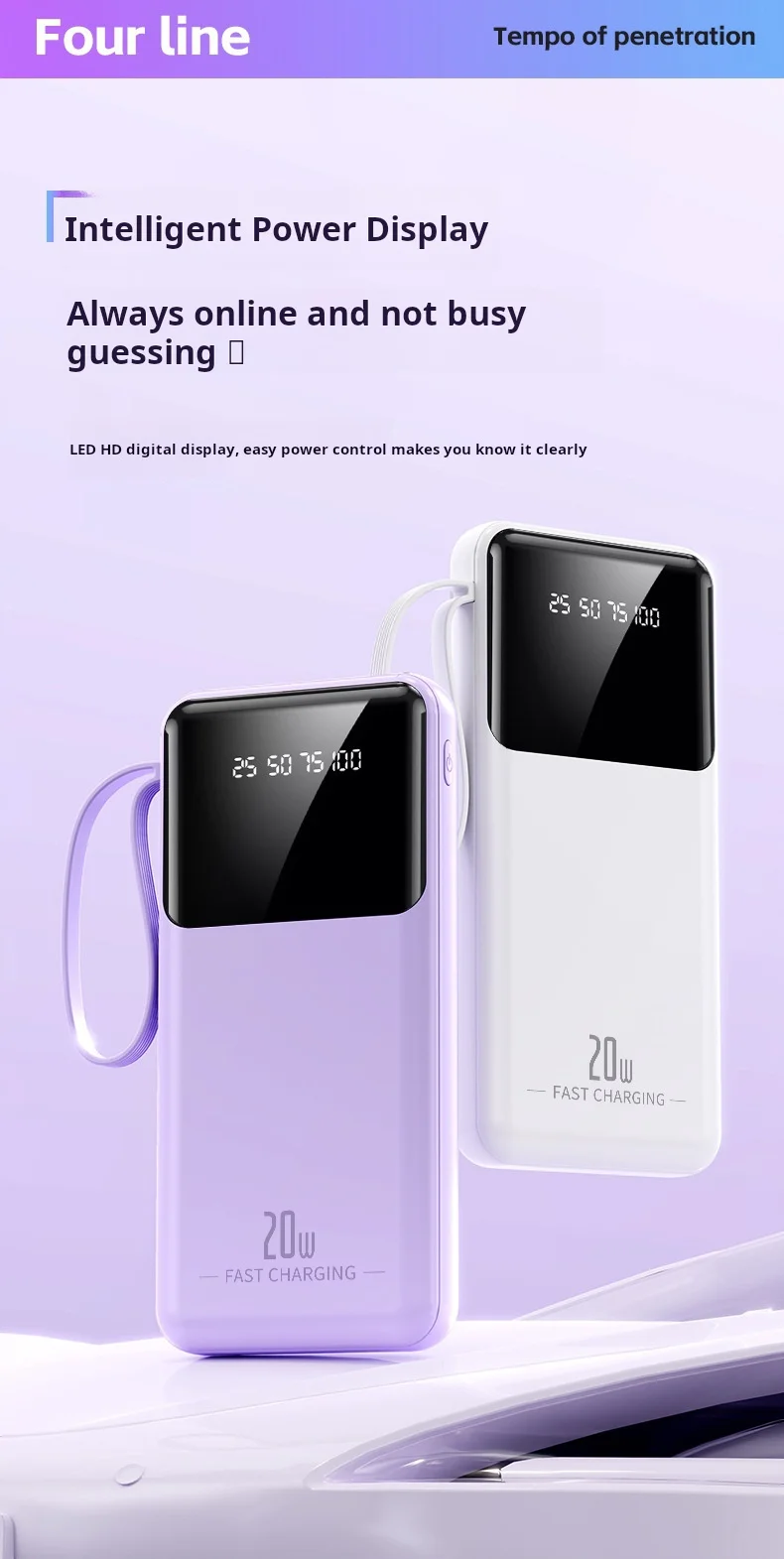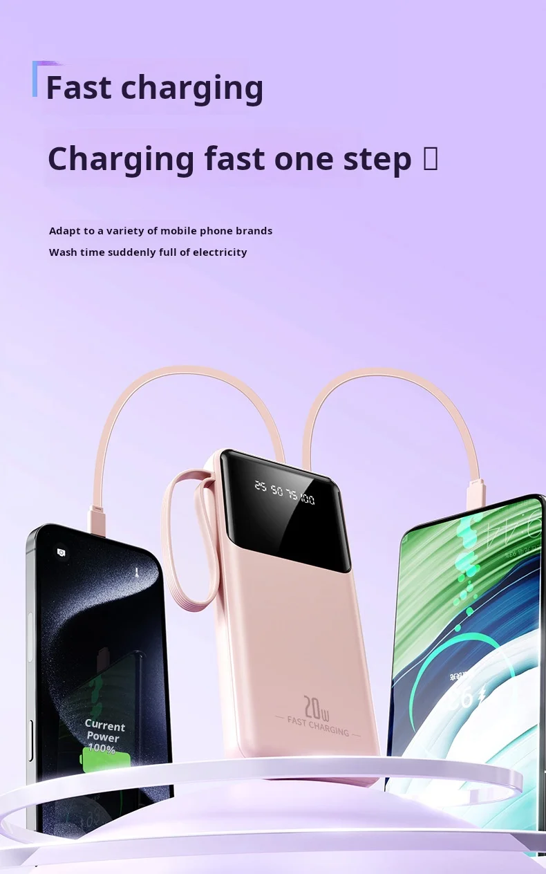 Charmast 20000mAh Portable Charger with Built in Cable 22.5W Travel Power Bank Fast Charging USB-C Suitable for Various Mobile Phones and Tablets