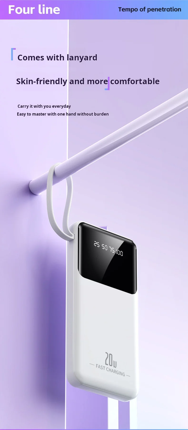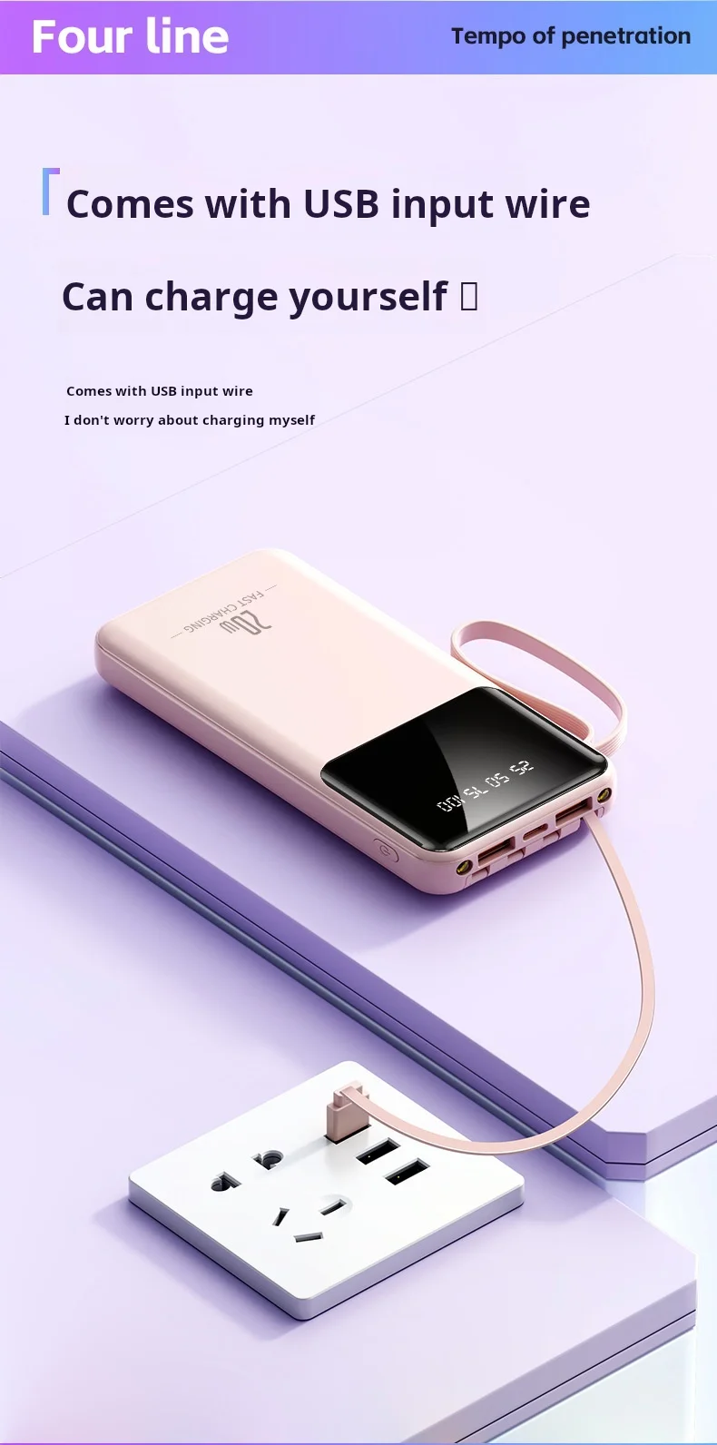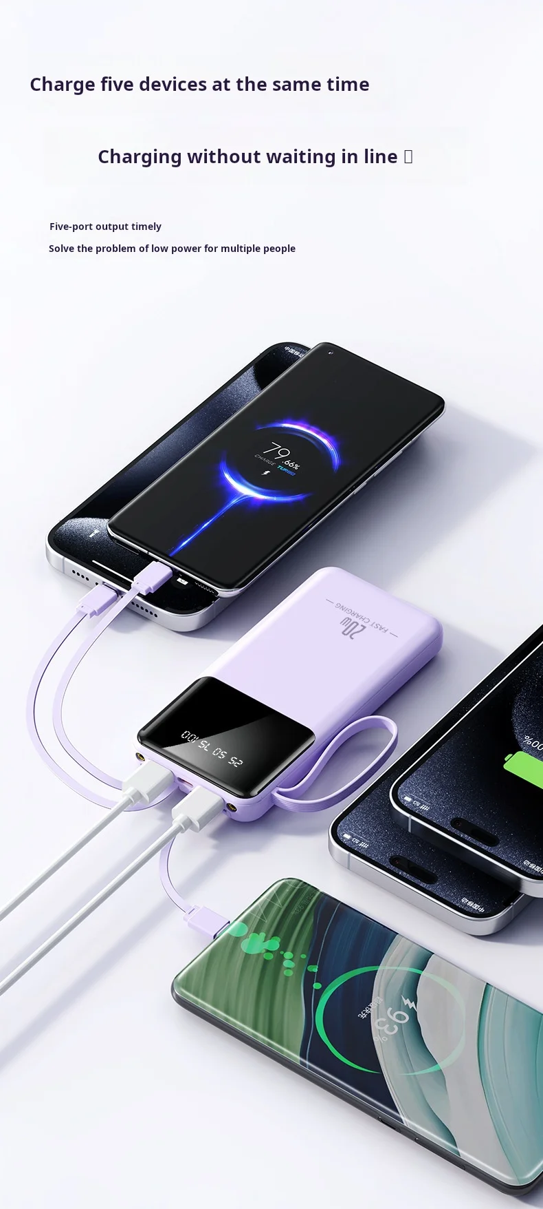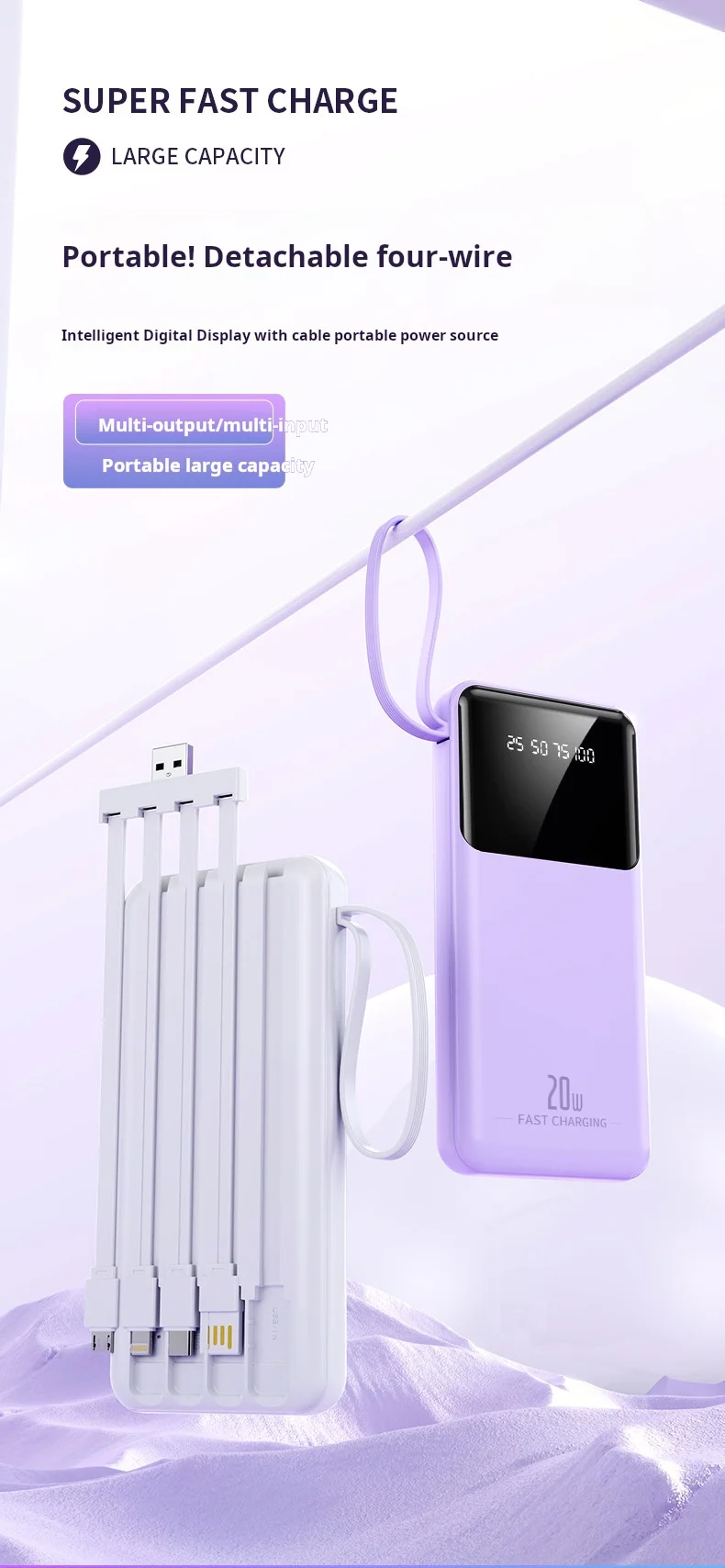 Charmast 20000mAh Portable Charger with Built in Cable 22.5W Travel Power Bank Fast Charging USB-C Suitable for Various Mobile Phones and Tablets