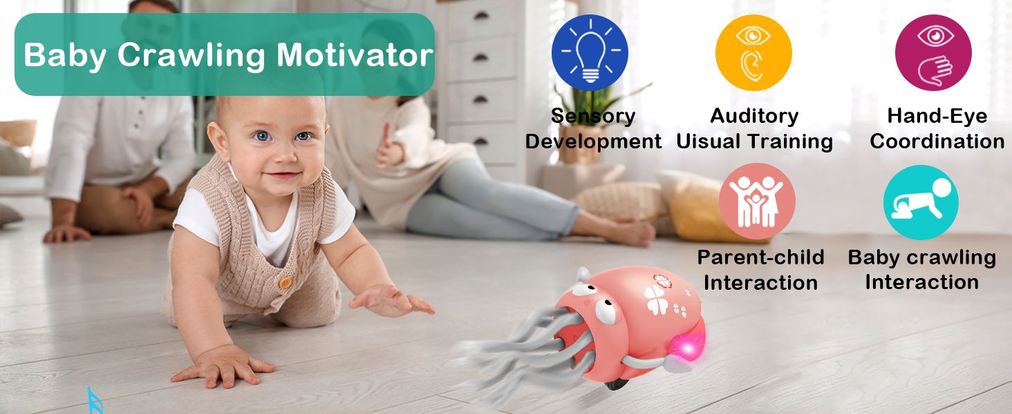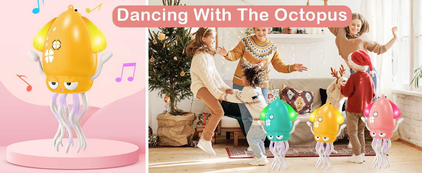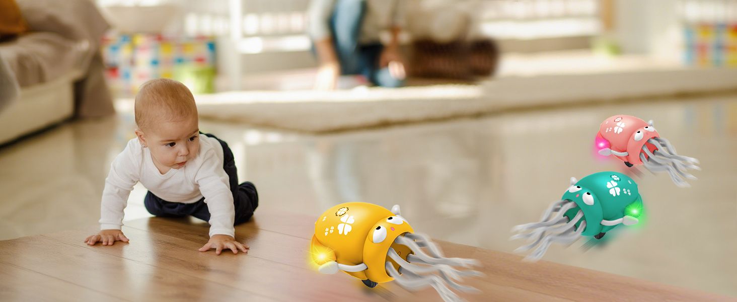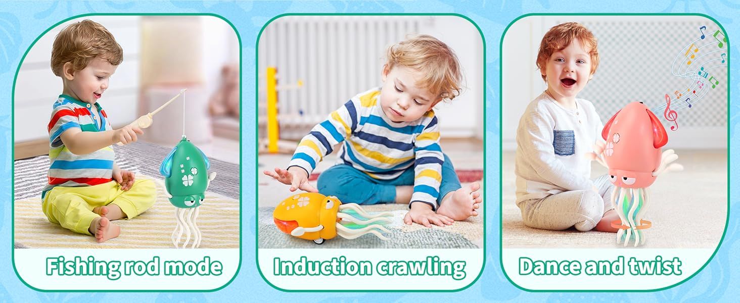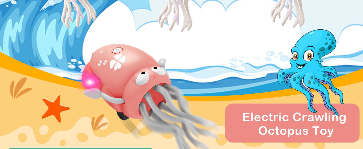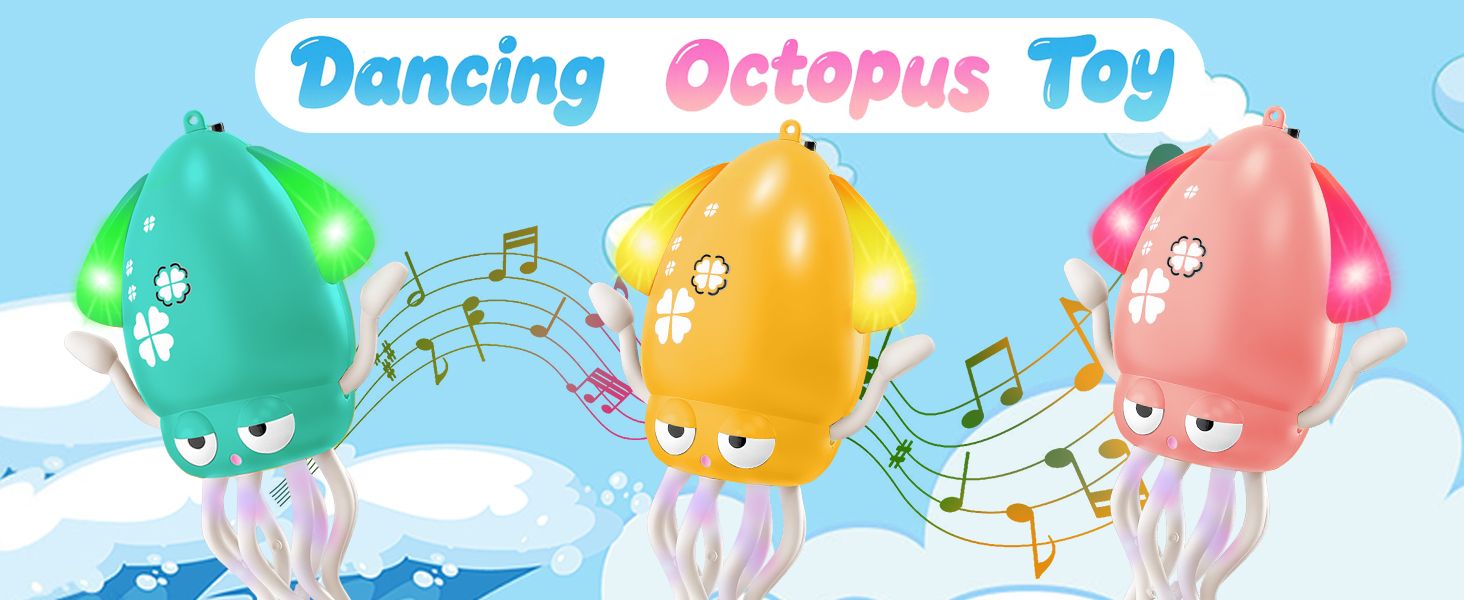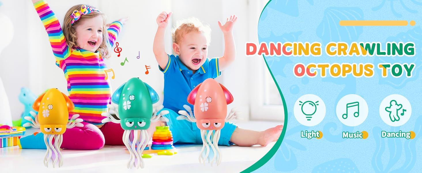 - ❤Interactive Dancing & Crawling Octopus ❤This lively octopus wiggles, spins, and crawls with colorful LED lights and fun music, encouraging babies to crawl and walk. Perfect for sensory development and active play.
