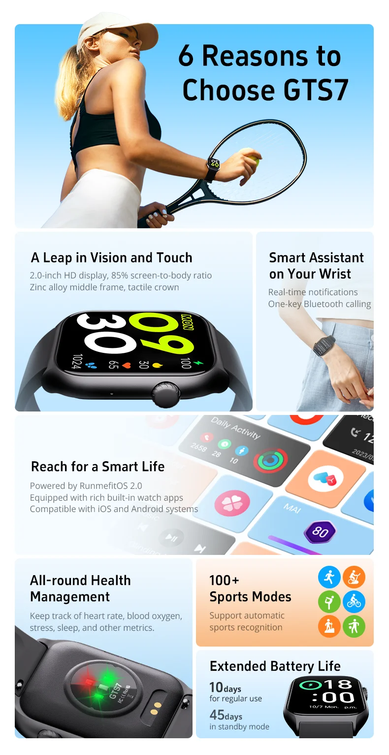 GTS7PRO 2025 New Fashion Smart Watch TFT Screen Fitness Tracker with Heart Rate Blood Pressure Monitor Waterproof